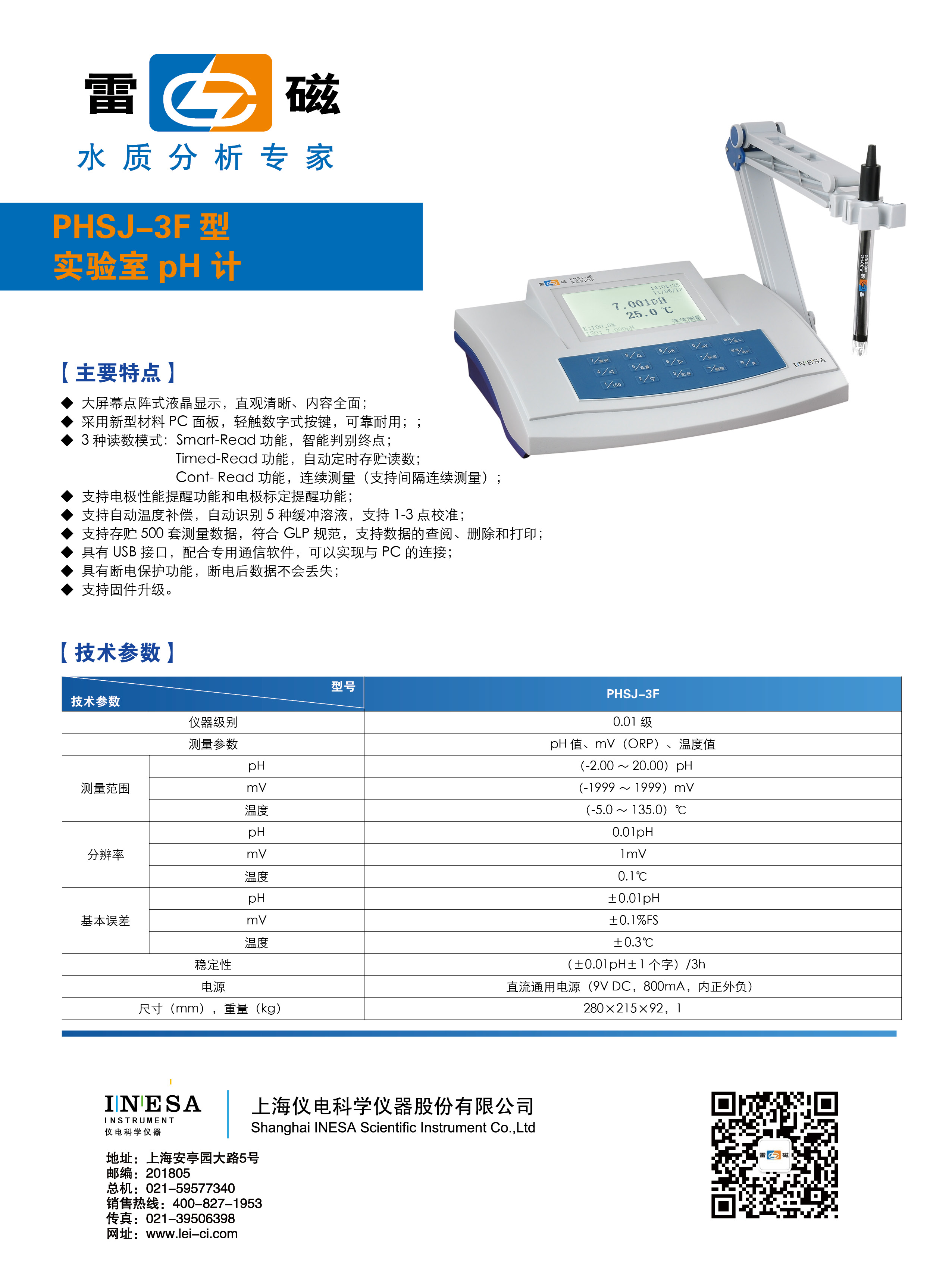 上海雷磁 實(shí)驗(yàn)室PH計(jì) PHSJ-3F