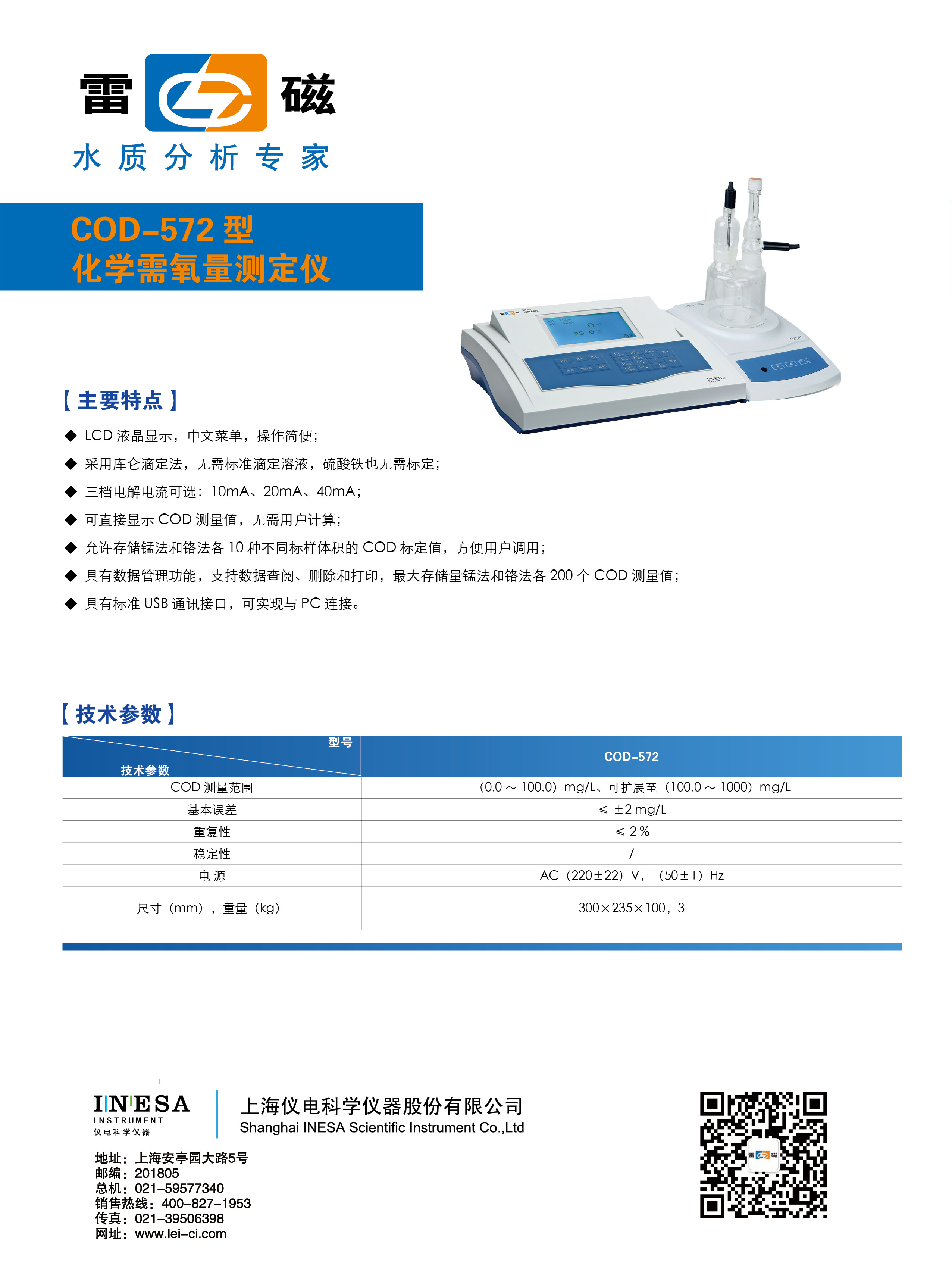 ※ 具有數據管理功能,支持數據查閱、刪除和打印,最大存儲量錳法和鉻法各200個COD測量值;